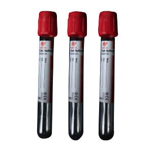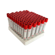 De plástico pet al vacío (13 x 100 mm) desechable para adulto sin anticoagulante, tapón rojo con silicón como lubricante y activador de-coagulación, volumen de drenado 6 ml (+ 0.3 ml)