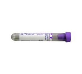 De plástico pet al vacío (13 x 75 mm) desechable para adulto con edta k2 (7.2 mg) aplicado por aspersión en la pared del tubo, tapón lila con silicón como lubricante, volumen de drenado 4.
